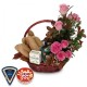Cheese basket that include boursin, blue cheese, camembert and roquefort cheese decoreted with pink roses