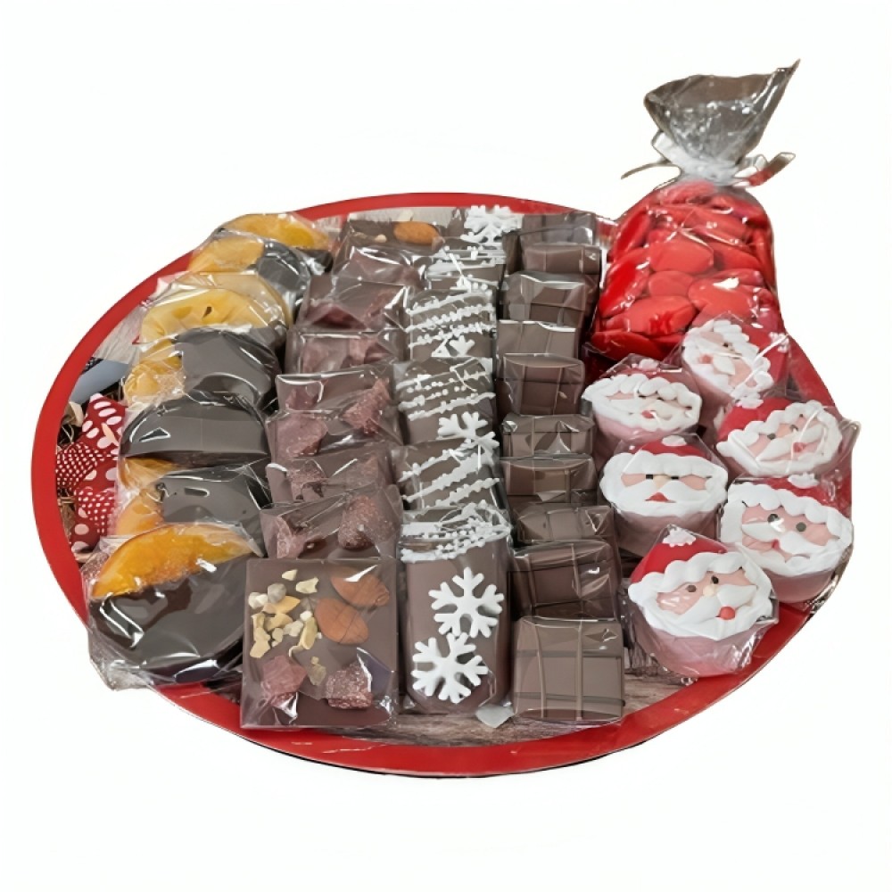 christmas plate filled with kilo and half of christmas themed chocolate and 200 grm of chocolate drageee wo celebrate this festive season with your loved one