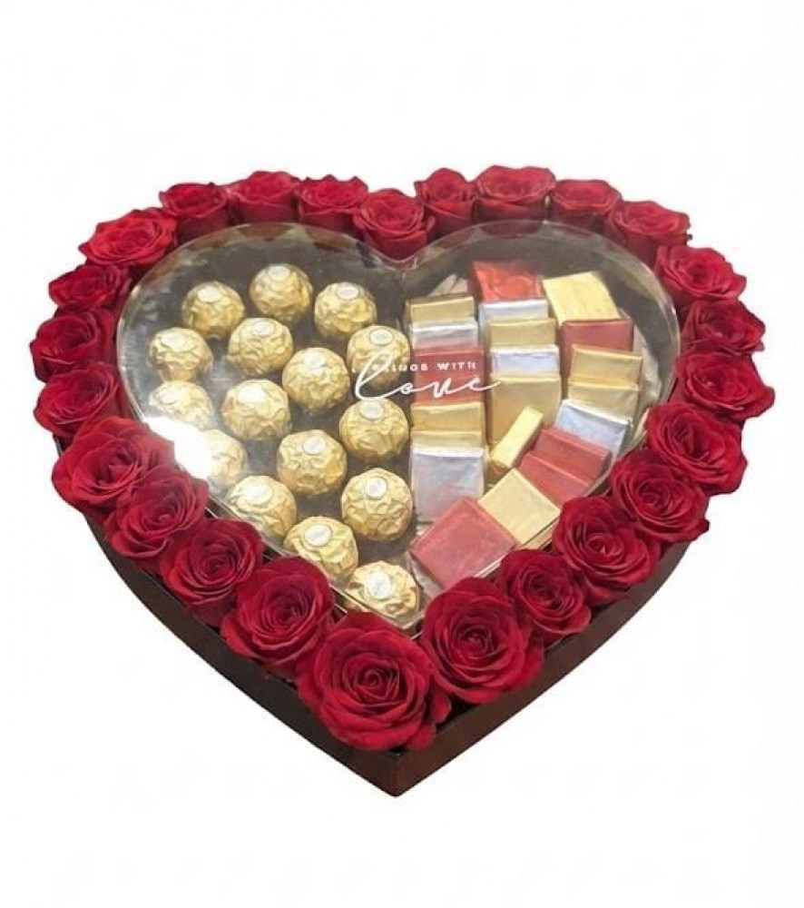 Product Code : Heart roses with special chocolate