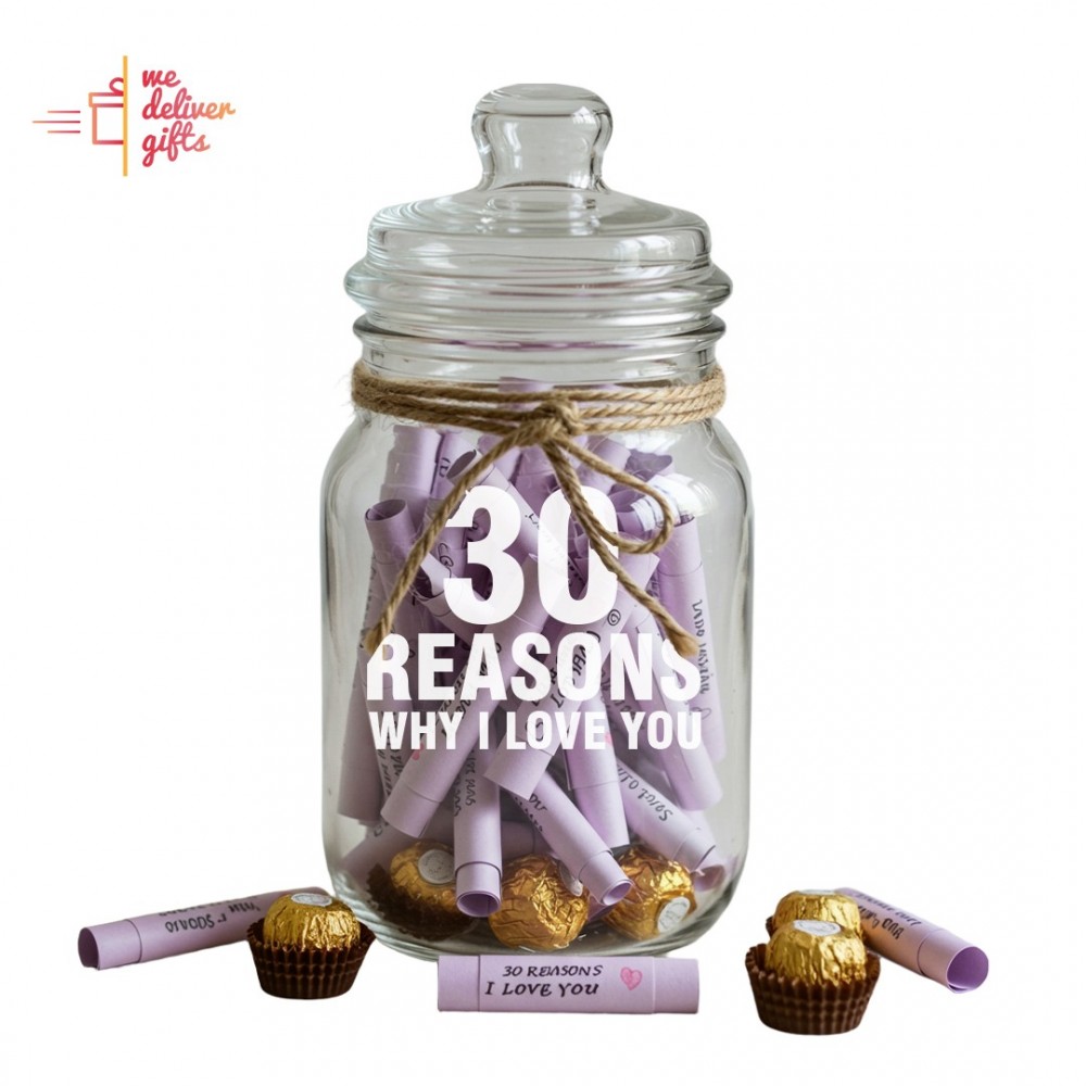 A jar filled with 30 love notes and Ferrero Rocher, the sweetest way to say “I love you.”