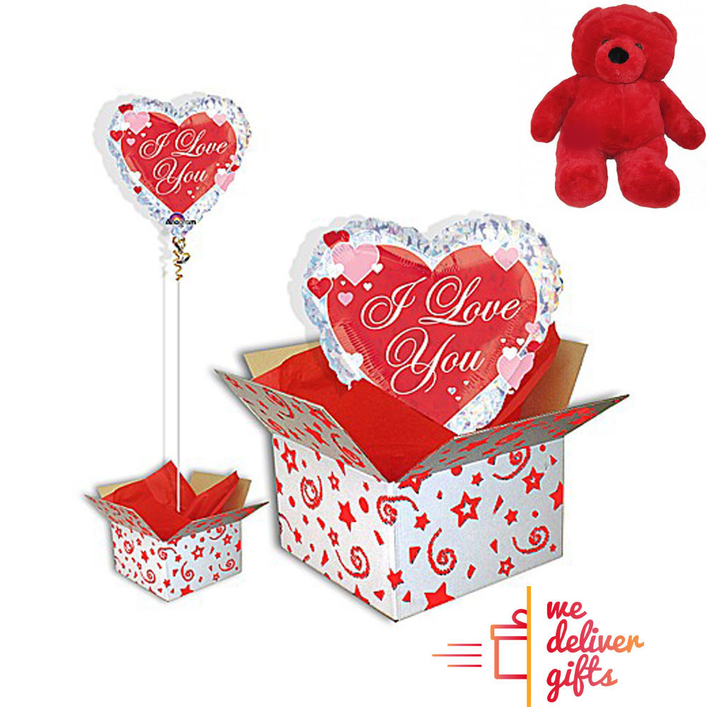 By default the box includes an 18Inch Helium "I love you" Balloon with a Teddy bear of 35 cm.