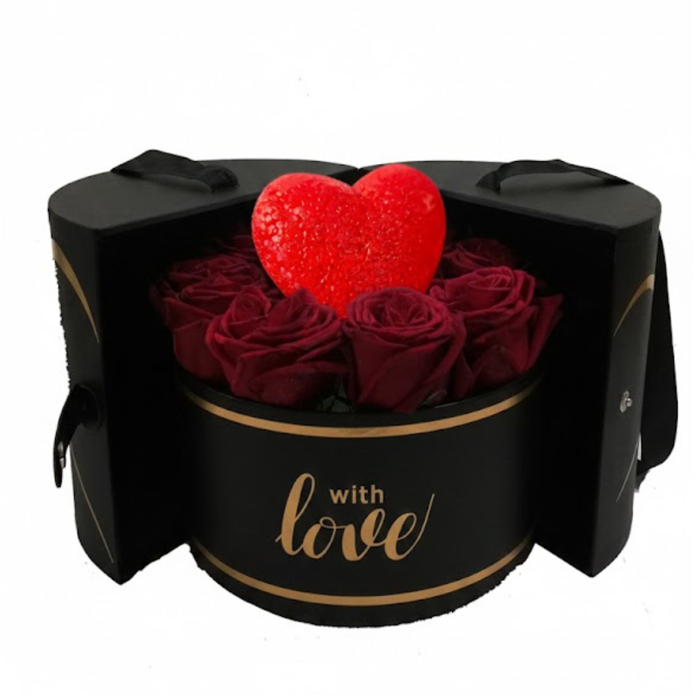 10 Roses in an Elegant Box, heart LED lamp