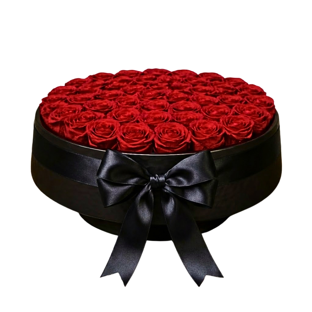 present your 50 roses in a ceramic black pot to show luxury