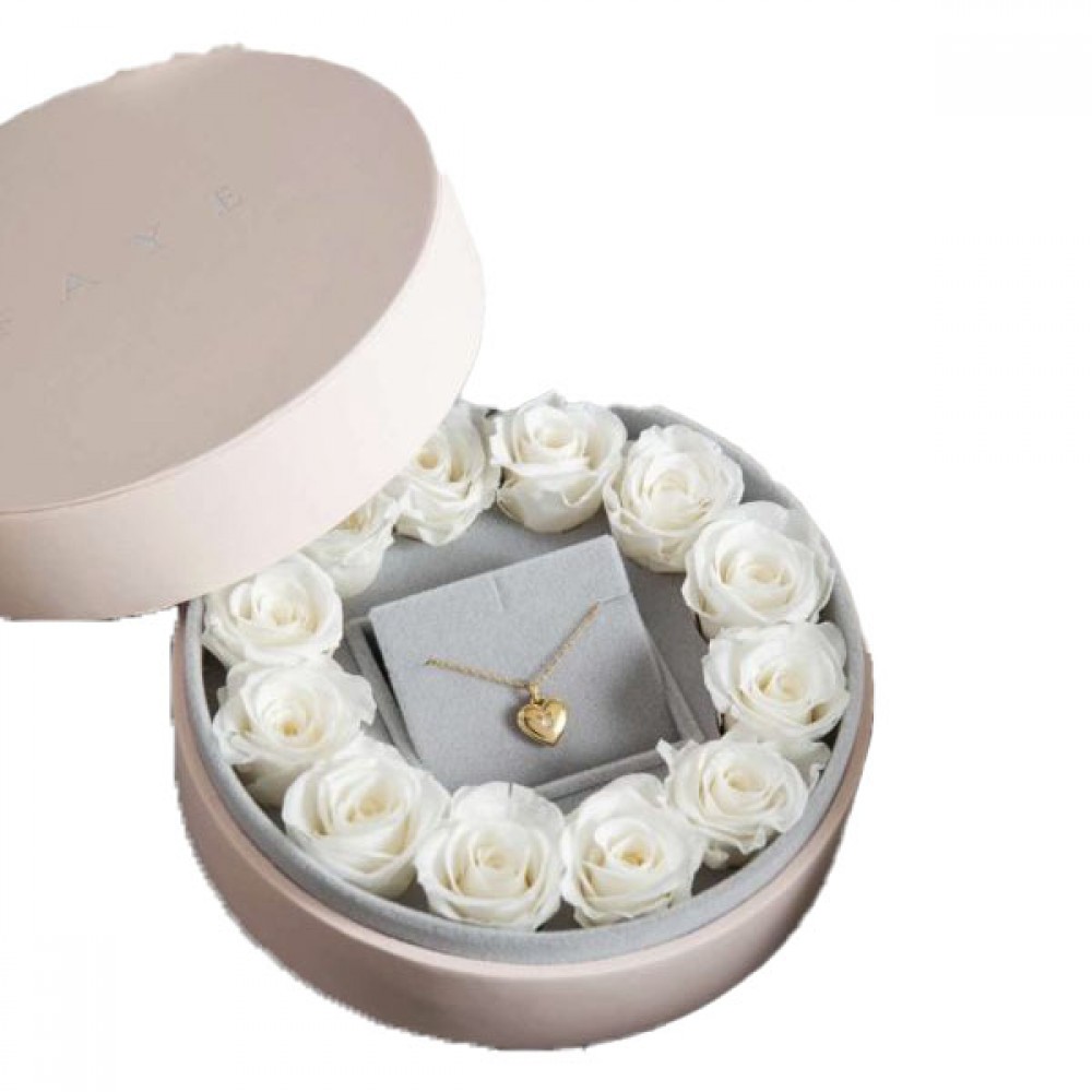 Circle of Love: Round Flower Box with Heart Necklace