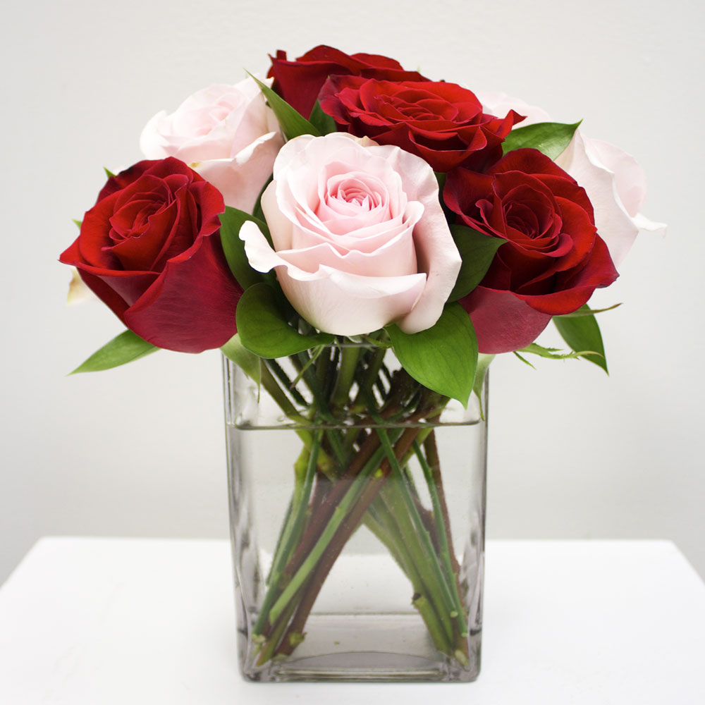 Product Code : Red and Pink Roses in a Cube